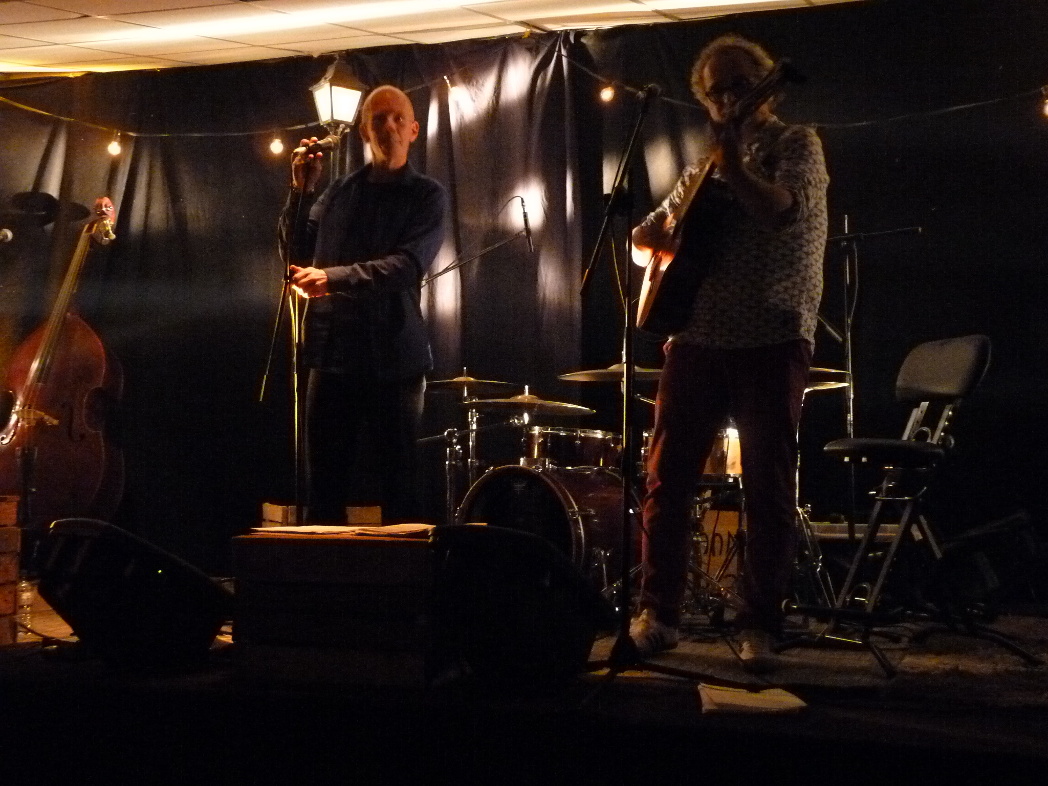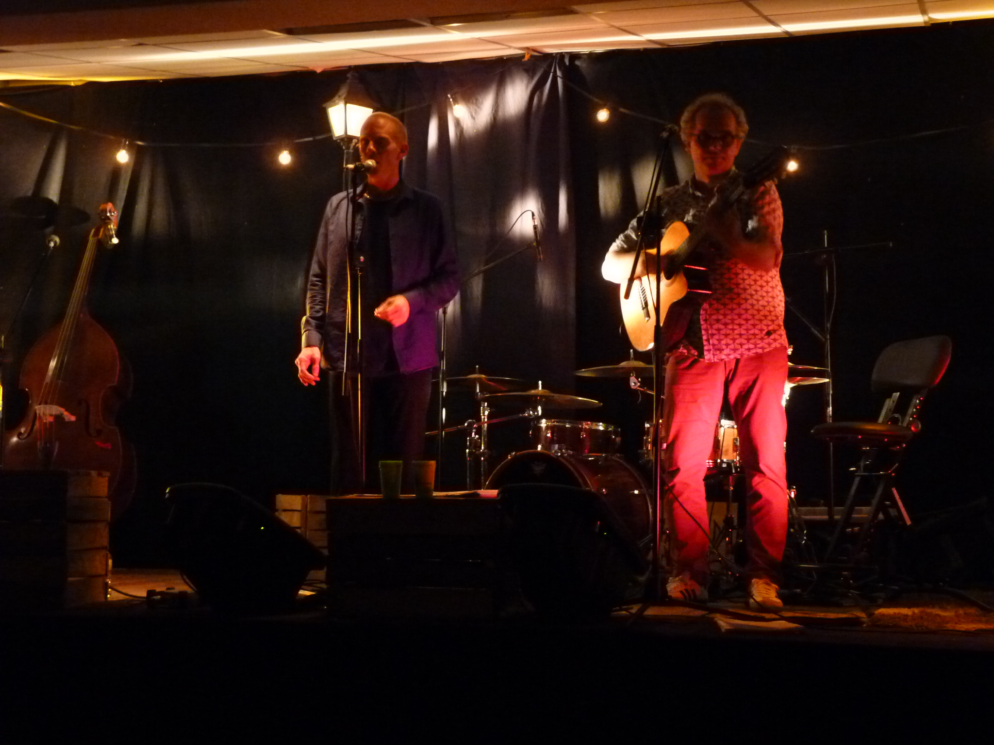 Et à 21h, Frizapla & Djulian, chansons françaises et fantasques. Espiègles et sensibles, ces deux compères puisent dans le répertoire d'une chanson française anticonformiste et pleine d'esprit et se réapproprient librement les standards des Boris Vian, Brel, Gainsbourg, Brassens et bien d'autres. Une musique aux couleurs tantôt swing, bossa, jazz… Des chansons à texte habités, quand le sens transpire !